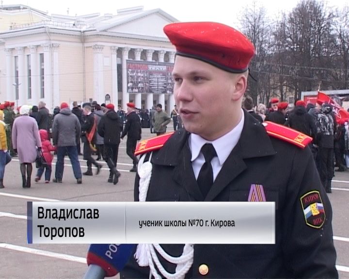 Уже сейчас школьники показывают мужество. Им не страшен ни зной, ни стужа. Юные кировчане стойко стоят, принимая присягу.