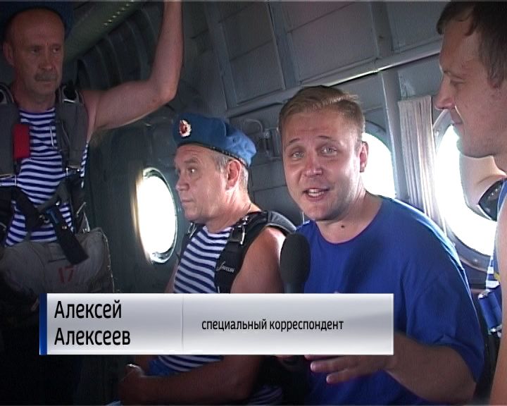 «На высотомере отметка в один километр, а значит, настало время ещё для одного ритуала десантников».«И сегодня в день ВДВ у одного из парашютистов, который будет совершать показательный прыжок, юбилейный 900-ый прыжок. Не надоело прыгать так много раз? Нет, это в душе у каждого парашютиста. Прыгать и получать удовольствие-это наша жизнь. А такой юбилейный прыжок в день ВДВ, что для Вас значит? Это специально подготовлено было по времени. Вчера было 2 прыжка, которые соответствовали, именно, 900-ому сегодняшнему. Все было сделано вовремя и в срок. Я Вас поздравляю, за ВДВ! Слава воздушно-десантным войскам. Ура!».