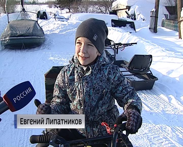 Помогает отцу и сын - Евгений Липатников, он учится во втором классе, и уже проявляет большой интерес к технике. Недавно отец сделал для него маленький снегоход.