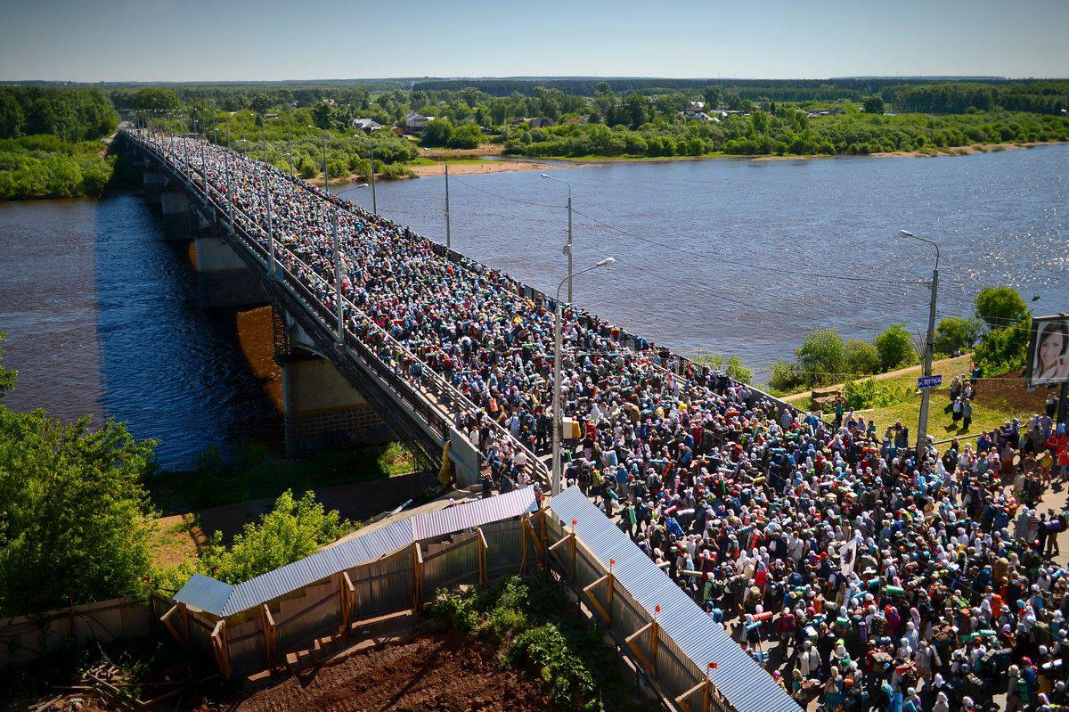 Тысячи паломников из разных городов и сел России проходят 180-километровый путь. На богослужения в селе Великорецком собираются более 50 тысяч человек.