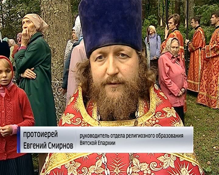 После Литургии от храма Рождества Пресвятой Богородицы города Орлова - в крестный ход. Верующие с молитвой идут до места погребения священномученика Михаила Тихоницкого. Всего - около ста человек.