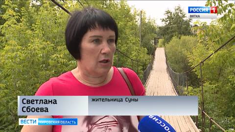 «Подвесные мосты - это редкость и экзотика для Кировской области. Этот соединяет старую и новую Суну. Несколько лет назад он частично обрушился, его восстановили, но он остался немного перекошенным. Местные жители часто жалуются на состояние этого моста».