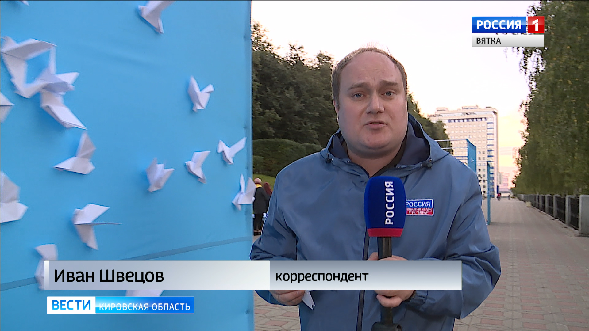 «Каждый из участников акции может взять вот такого маленького бумажного голубка или сделать его самому и прикрепить к одному из 3-х стендов, расположенных на набережной Грина».