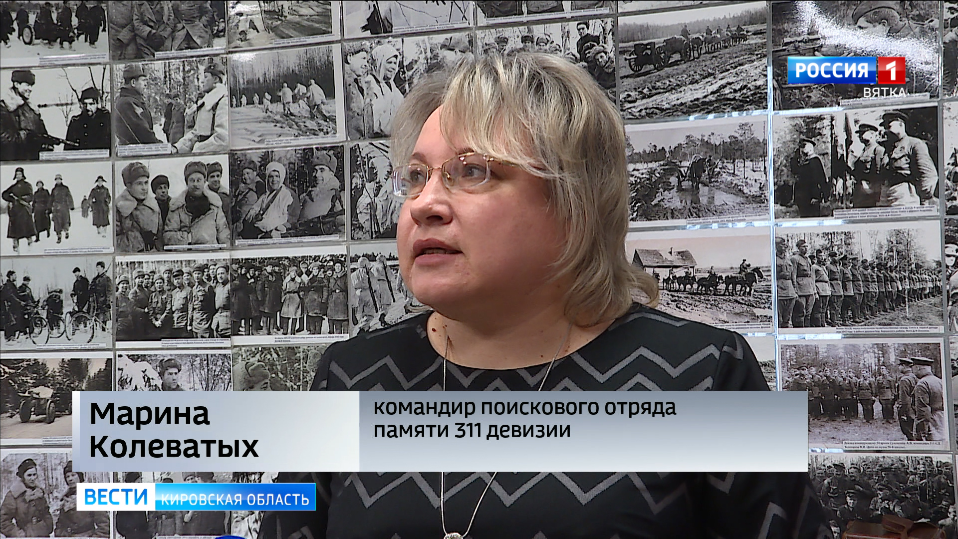 МАРИНА КОЛЕВАТЫХ, КОМАНДИР ПОИСКОВОГО ОТРЯДА ПАМЯТИ 311 ДИВИЗИИ:«В этой комнате будут собираться экспонаты, посланные со всех уголков нашей Родины. И сейчас мы уже видим письма, фотографии военной поры, воспоминания воинов 311 дивизии».