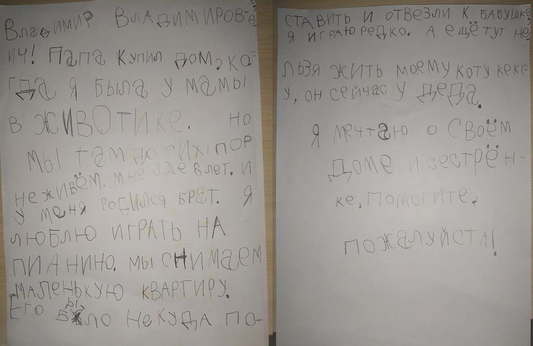 Девочка из Кирова в своем письме Владимиру Путину попросила Президента РФ помочь завершить сдачу долгостроя на улице Орджоникидзе в Нововятском районе города.«Владимир Владимирович! Папа купил дом, когда я была у мамы в животике. Но мы там до сих пор не живем. Мне уже 6 лет. И у меня родился брат. Я люблю играть на пианино, но мы снимаем маленькую квартиру. Его было некуда поставить и его отвезли к бабушке, я играю редко. А еще тут нельзя жить моему коту Кексу, он сейчас у деда. Я мечтаю о своем доме и сестренке, помогите, пожалуйста», – рассказала о ситуации девочка.