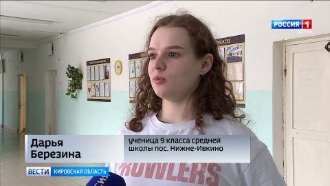 В поселке Нижне-Ивкино у снежного десанта большая программа. С самого утра - встреча со школьниками. Ученикам старших классов волонтеры рассказали о деятельности студенческих отрядов и о том, какую социальную миссию они выполняют. Дарья Березина заинтересовалась и планирует в будущем вступить в студенческое сообщество.