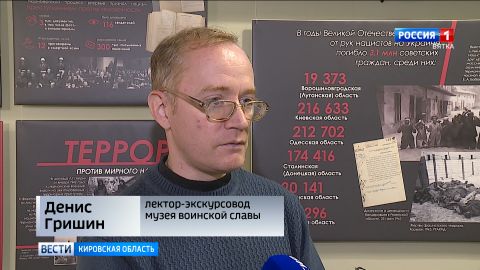 «Есть у нас, например, личные вещи Героя Советского Союза Вениамина Захаровича Гридина, который как раз воевал на территории Украины в годы войны, представлен его китель, ремень, потом довольно интересная вещь, принадлежавшая Петру Николаевичу Широнину - известная улица широнинцев в нашем городе, и он тоже Герой Советского Союза, и прославился, командуя подразделением, которое держало оборону в районе станции Тарановка - это Харьковская область, Украина».