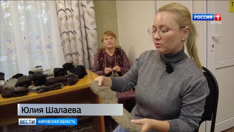 «Министерством соцразвития Кировской области организована акция "Вяжем солдату". В данной акции участвуют все учреждения социального обслуживания населения. Наши получатели соцуслуг активно отозвались и начали вязать теплые вещи - носки, варежки, шапки».