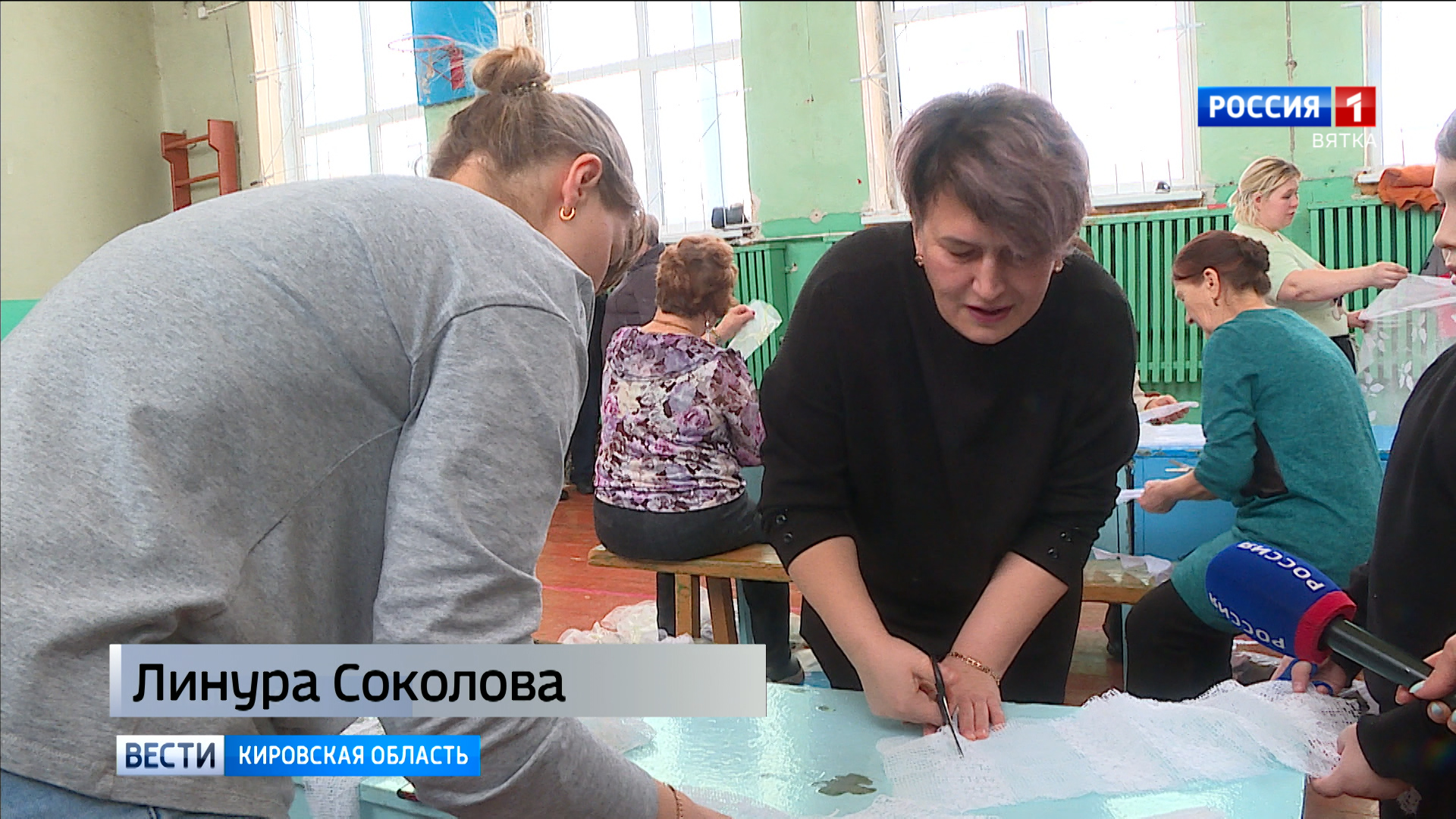 Старые шторы, тюль, обрезы ткани - весь материал для маскировочных сетей жители Малмыжа принесли из дома.
