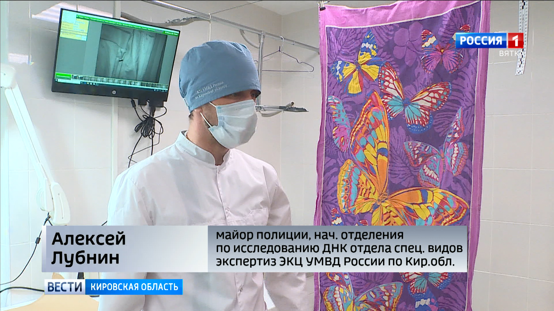 Это - ДНК лаборатория. Сюда попадают предметы с мест преступлений, которые происходят в Кировской области. Эксперты-криминалисты только по одному биологическому следу могут узнать практически все о человеке. Здесь делают экспресс-тесты на биологический материал человека. Тут же проводят предварительный осмотр вещественных доказательств. Следы ДНК можно найти на любом материале. А в этом помещении исследуют крупные предметы.