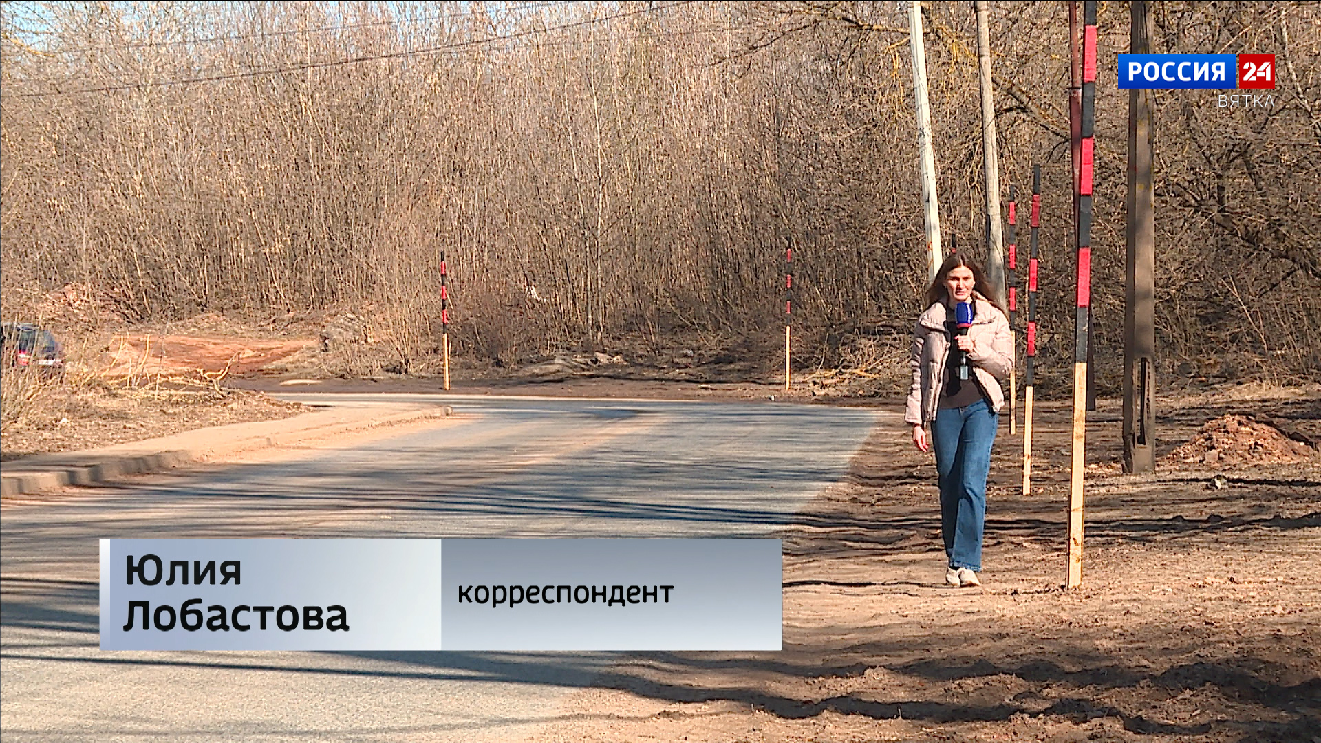 «Пока дорога сухая, но по опыту прошлых лет улицу Лесозаводскую со стороны Трифонова монастыря подтапливает в весенний паводок. Для измерения уровня воды установлены специальные столбы».