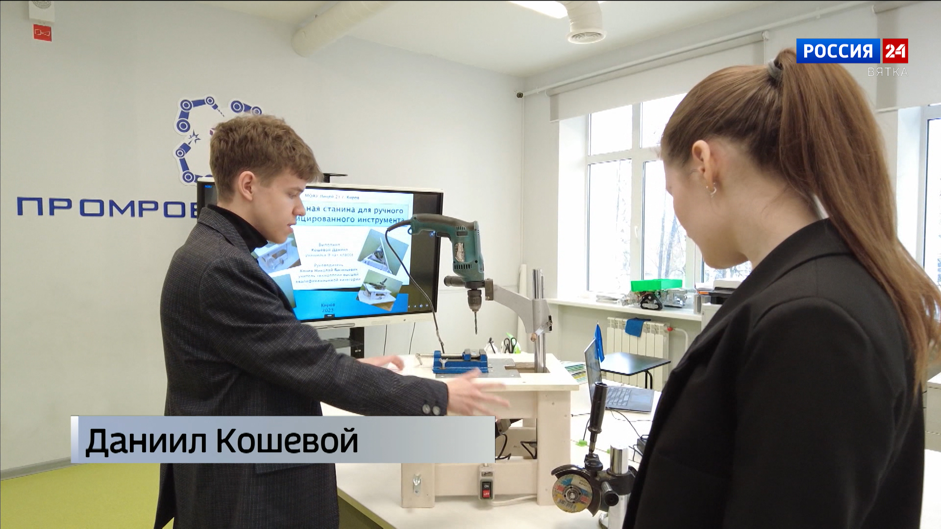 В старшей возрастной категории конкуренция серьезнее. Защита проектов для них прошла в формате научно-практической конференции, где юные изобретатели представили 14 инженерных проектов в четырех номинациях. Учащийся школы номер 21 Даниил Кошевой представил проект «Универсальная станина для электрифицированного инструмента», который разработан специально для школы под руководством Николая Конева.