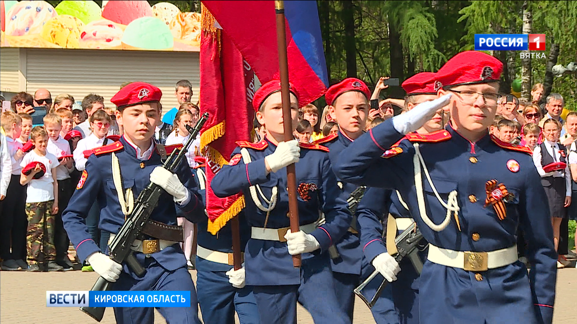 С особым трепетом юные кировчане следят за каждым шагом знаменной группы, что вносит российский триколор и флаг детско-юношеского военно-патриотического движения.