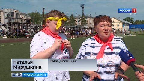 «Соревнуемся мы по 10 видам спорта, в том числе, дартс, бочча, баскетбол, кегли, футбол, метание меча. Дети приехали, конечно, для них это радость большая, приехать в город Киров, в центр, посмотреть на других, на наш город, тем более сегодня такая прекрасная погода».