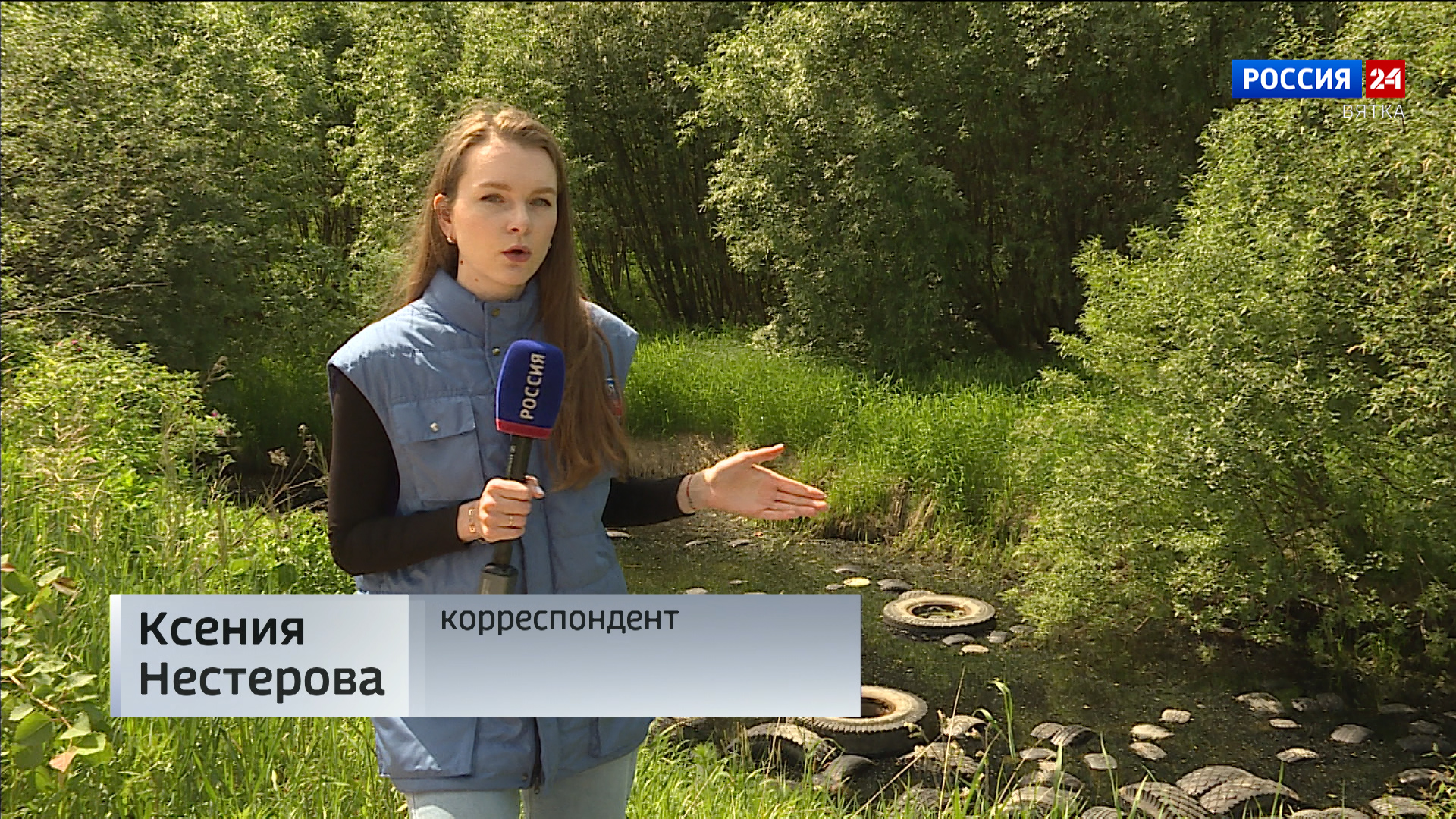 КСЕНИЯ НЕСТЕРОВА, КОРРЕСПОНДЕНТ:«С момента публикации прошло чуть меньше месяца, но, как мы видим, ситуация не изменилась: десятки отработанных покрышек сброшены в канаву возле дороги».