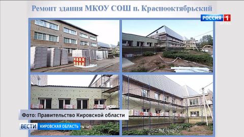 В поселке Краснооктябрьский Куменского района начался ремонт фасада здания школы. Смонтированы строительные леса. Идут работы по утеплению здания.
