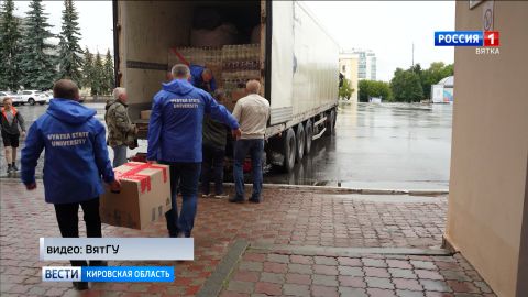 Очередная партия гуманитарной помощи в зону СВО отправилась от главного корпуса ВятГУ на Театральной площади. За полторы недели студенты и сотрудники вуза собрали всё самое необходимое: медикаменты, средства личной гигиены, продукты питания, инструменты, генераторы и многое другое. Также волонтёры изготовили 8 маскировочных сетей. Груз отправился в зону СВО вместе с партией гуманитарной помощи от кировских благотворительных фондов.