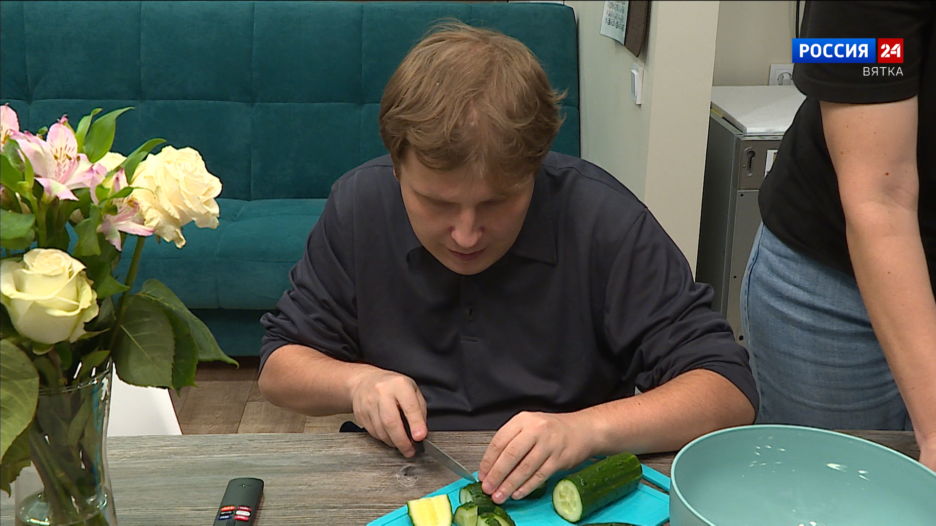 И так здесь во всем. Им позволяют все делать самостоятельно, но при этом рядом всегда есть сопровождающий. Иван, Александр, Наташа и Диана - первые участники проекта "По-взрослому". Каждую среду к ним будут приходить гости, а значит с утра приборка и подготовка к их встрече. Сегодня они все вместе готовили пирог.