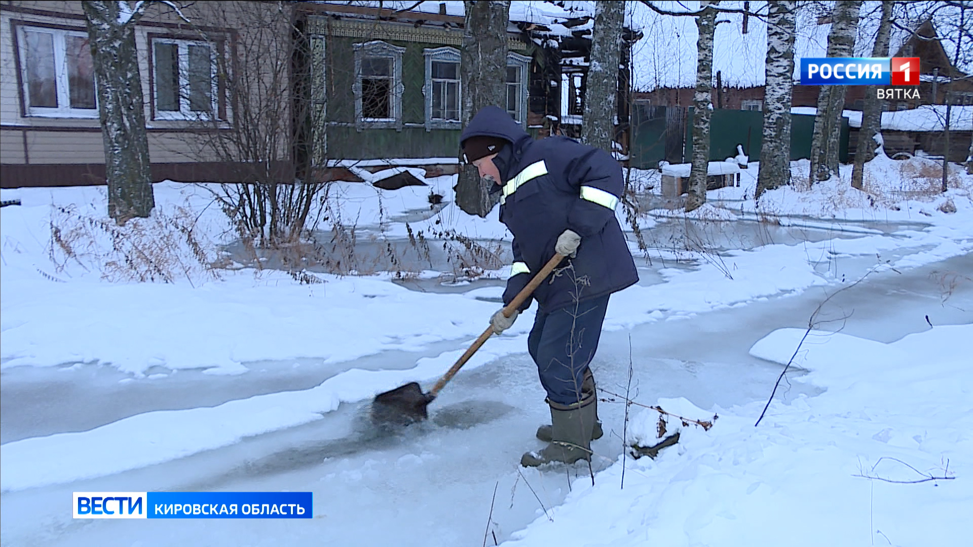 Вот так - каждый свой день начинает житель Талицы Анатолий Ворошилов. Лом и лопата - главные помощники пенсионера. Мужчина борется с замерзшей водой возле своего дома. А подтапливает его уже больше недели. По словам мужчины, вода затопила сразу несколько домов - от начала населенного пункта до реки Сандаловки, а виной всему - промерзший ручей, который течет вдоль дороги. По неизвестной причине ручей переполнился, и вода начала затапливать территории частных домов. Местные жители считают, что причина такой природной аномалии - в парке развлечений, что находится неподалеку.