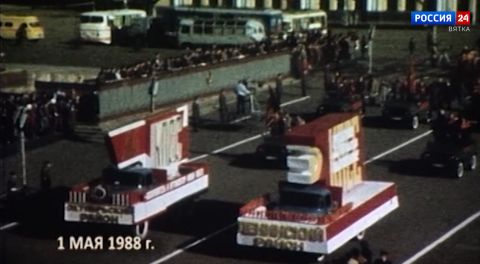 А это один из самых ранних, известных на сегодня кинорепортажей с Первомайской демонстрации в городе Кирове. 1 мая 1959 г. А через три года в эфире Кировского телевидения прошла первая прямая трансляция демонстрации с Театральной площади при помощи передвижной телевизионной станции. В Советском Союзе День труда стал не просто официальной, а одной из самых почитаемых дат и объявлен выходным. Многие до сих пор хорошо помнят первомайские демонстрации, на которые выходили сотни тысяч человек.