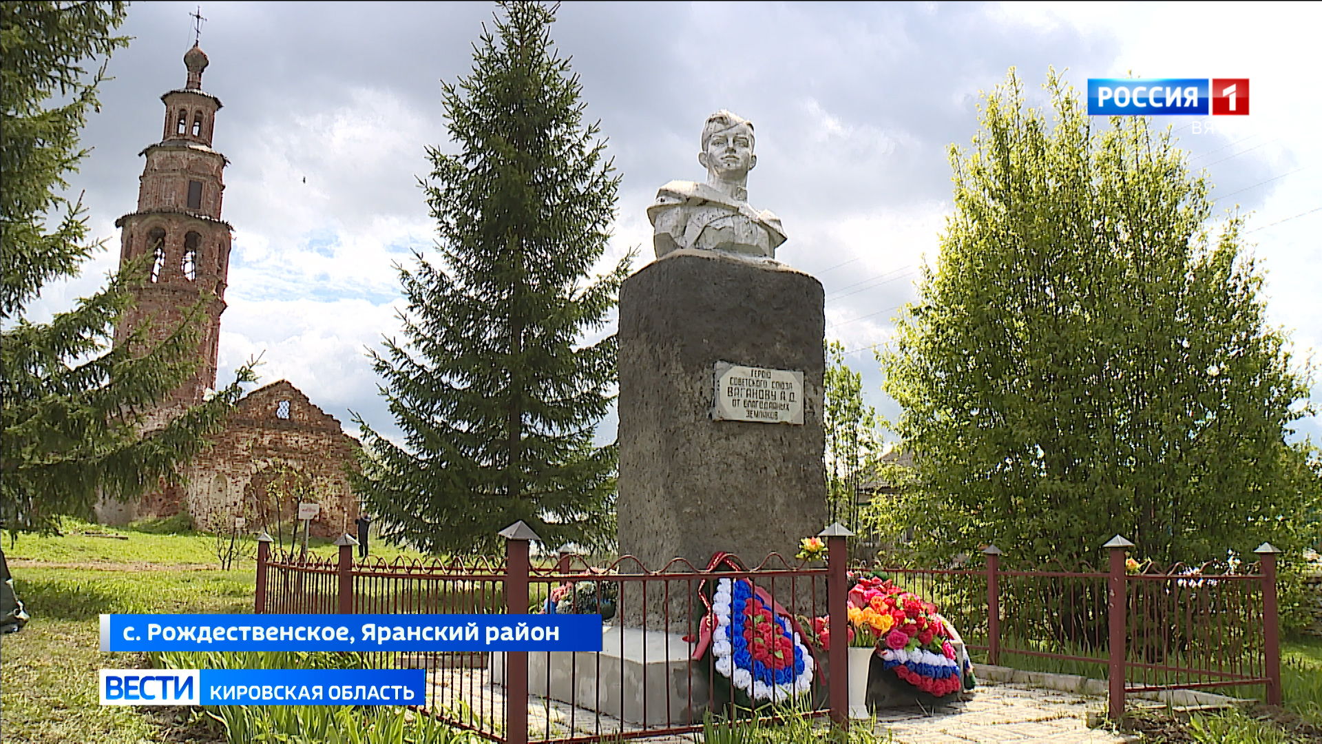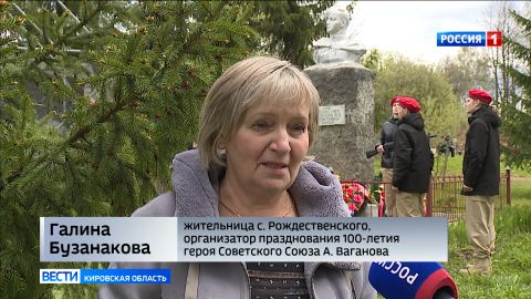 Александр Ваганов не вернулся домой с Великой отечественной, но память о нем чтят на малой родине. В Рождественском еще в советское время был открыт бюст герою. Его имя носит улица в селе и в Яранске, где Ваганову также установлен памятник. Сегодня у мемориальной зоны собрались и местные жители, и жители окрестных деревень, приехали гости из Кирова, и из других районов области, чтобы отдать дань памяти всем, кто участвовал в той страшной войне.