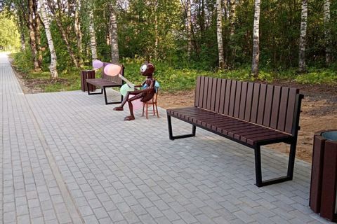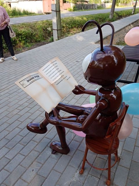 В городе Мураши в рамках проекта «Формирование комфортной городской среды» нацпроекта «Инфраструктура для жизни» завершены работы по устройству пешеходной зоны на четной стороне улицы Карла Маркса от улицы Горького до железнодорожного моста и улицы Степана Халтурина. Подрядчики обустроили тротуар, установили скамейки, урны и новый арт-объект: скульптуру муравья, сидящего на стуле и читающего районную газету.