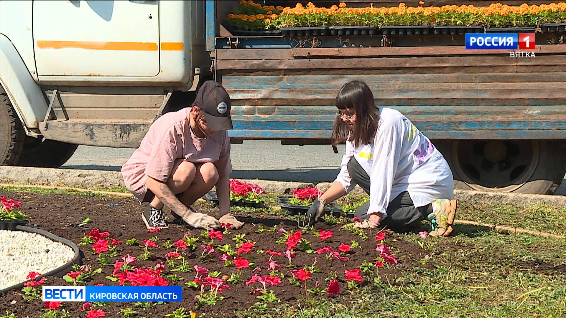 «Сейчас у доски почета мы высаживаем бегонию и петунью. За эту неделю мы посадим все цветники первомайского района. Заменим тюльпаны, которые отцвели».