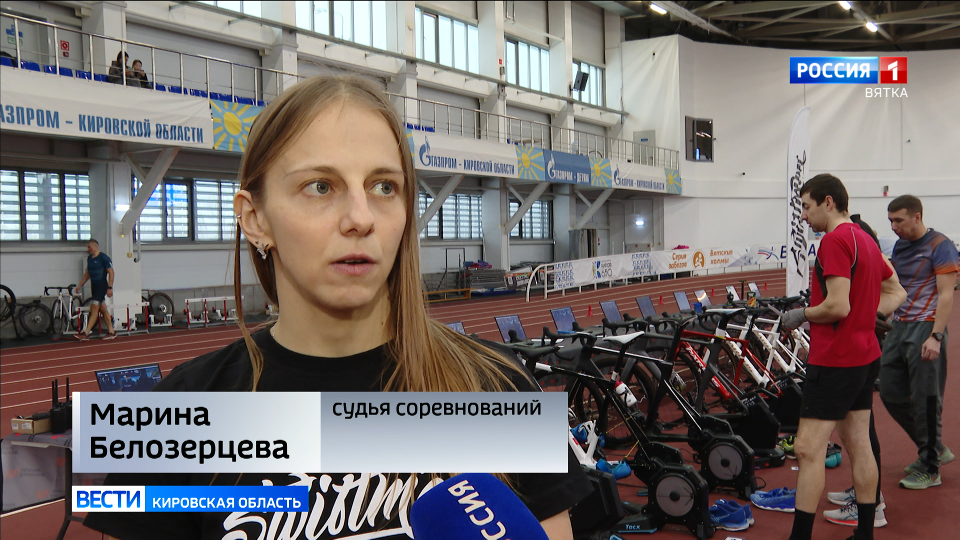 «Это первый этап серии зимних стартов по триатлону, сегодня суперспринтерская дистанция. Обычно спортсмены соревнуются на стандартной дистанции, а здесь дистанция небольшая».
