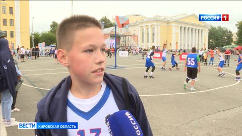 Театральная площадь сегодня словно спортивная арена. Более 70 команд принимают участие в турнире «Оранжевый мяч». Среди всех разновидностей баскетбола версия 3х3 по популярности уже серьезно конкурирует с классической под щитом. Здесь быстрые и динамичные игры. Турнир открыли молодые спортсмены.