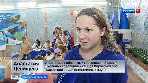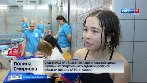 Уже в четвертый раз Киров принимает школьные спортивные клубы на областных соревнованиях. В этом году спортсмены покажут себя в легкой атлетике, баскетболе и плавании. В последнем школьникам предстоит показать лучшее время на дистанции 50 метров. К разминке юные участники подходят серьезно. Во многих школьных спортивных клубах плавание - направление относительно новое, поэтому каждый заплыв решающий.