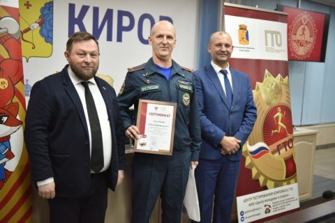В администрации Кирова прошла торжественная церемония вручения золотых знаков отличия Всероссийского физкультурно-спортивного комплекса «Готов к труду и обороне», который является частью госпрограммы «Спорт России». Золотыми знаками отличия ГТО был награжден 21 кировчанин. Во время этого мероприятия спортсменов поздравил глава администрации Вячеслав Симаков.