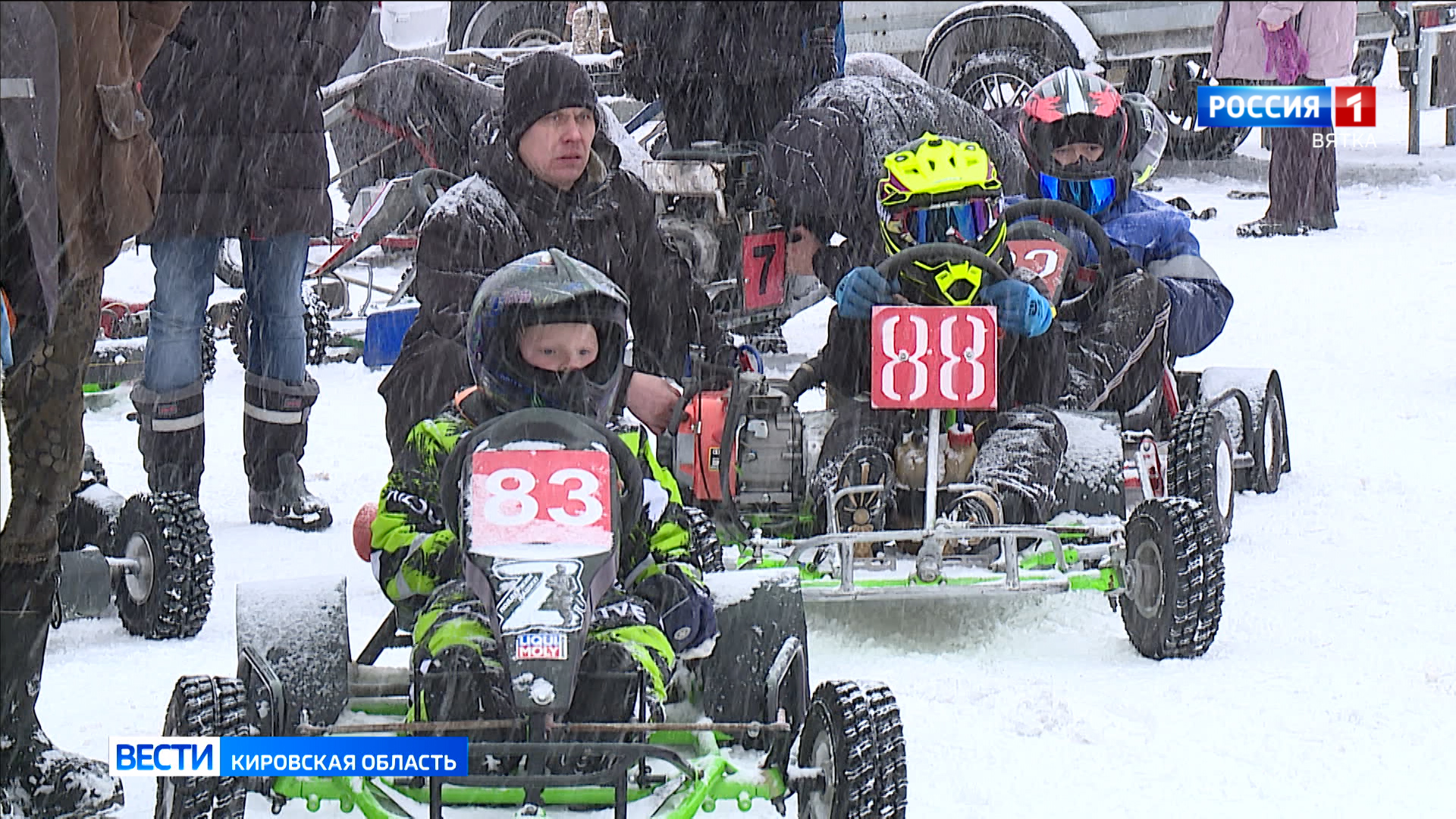 Гонка должна была состояться в любую погоду, послаблений ни для кого нет, лед покрыт снегом, порой участников заносило в сугроб, что приходилось вытаскивать. Но снегопад и ветер не помешали картингистам показать достойную борьбу.