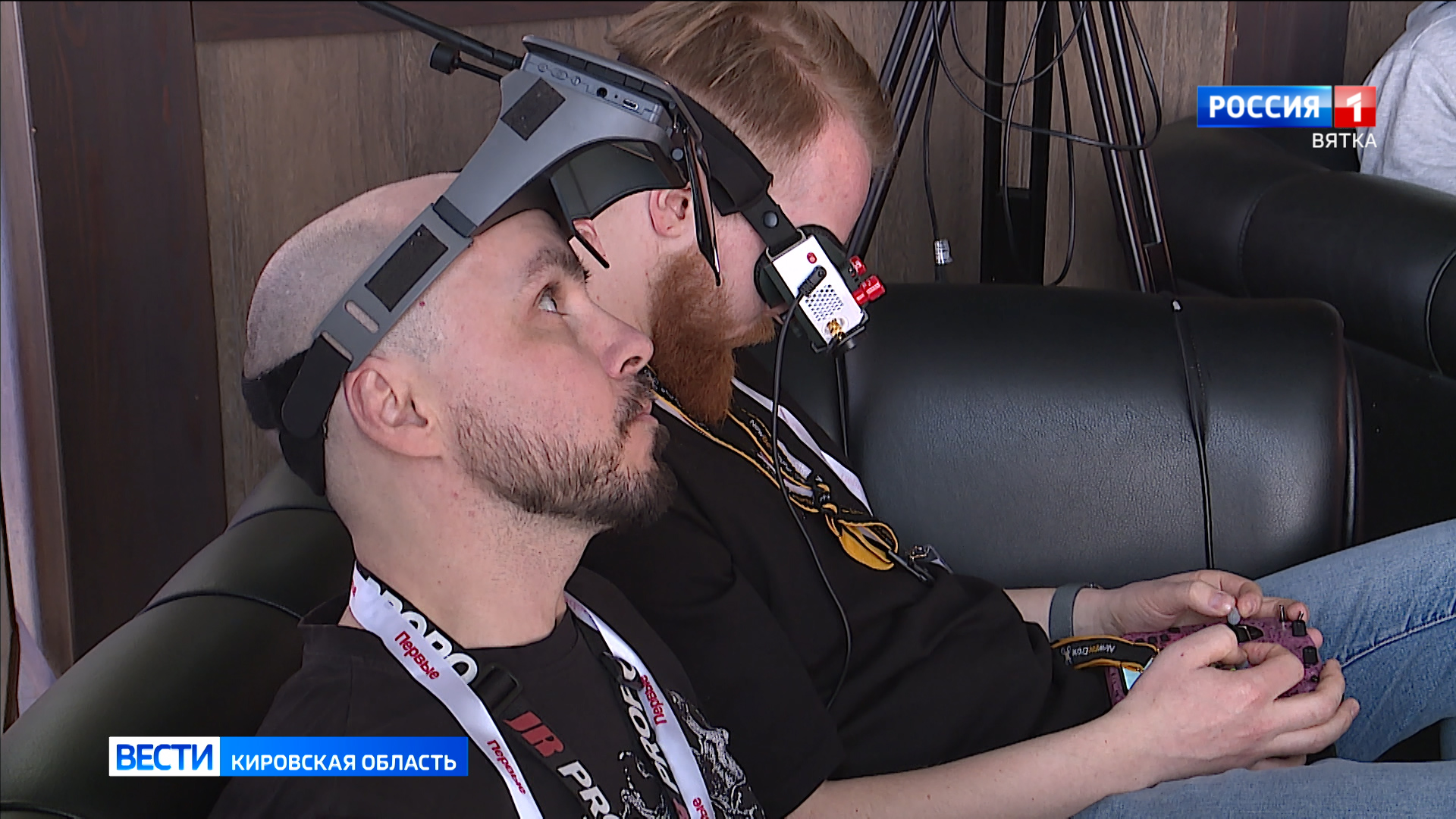 «Подобные очки, которые связываются с дроном, т.е. мы летим прямо от первого лица. Видим все, что видит дрон. Управляем подобным пультом. Т.е. мы как будто сидим в этом дроне и пилотируем им».