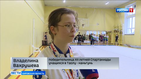 В финале Спартакиады учащихся команду Кировской области представляли 11 спортсменов. Почти каждый поднялся на пьедестал почета. Владелина Вахрушева в Анапе перед судьями предстала во всей красе. Программа с длинным оружием принесла золото, а без оружия была отработана на серебро.