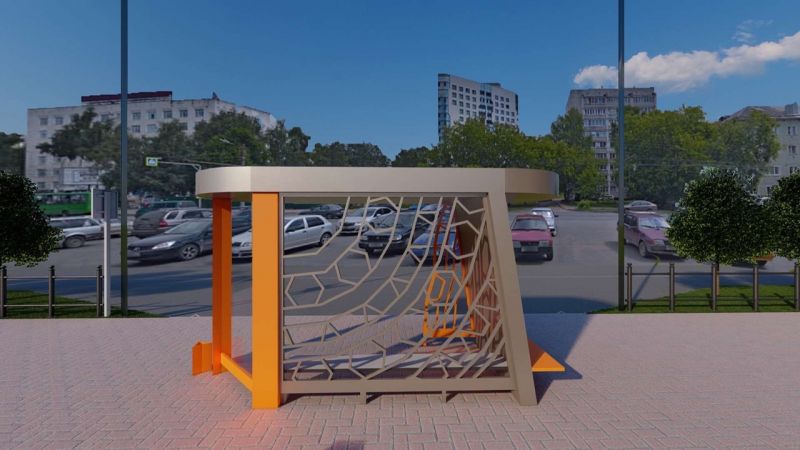 В описании проекта поясняется, что дизайн-концепция – это синтез двух начал Кирова – ремесленного и промышленного. Строгие и немного грубые формы символизируют промышленность, а яркая узорчатая окантовка стекла – дымковские мотивы.Форма остановки – «переработанный» образ дымковского индюка, колонна в виде трехконечной звезды – отсылка к трем пальцам на его лапах.