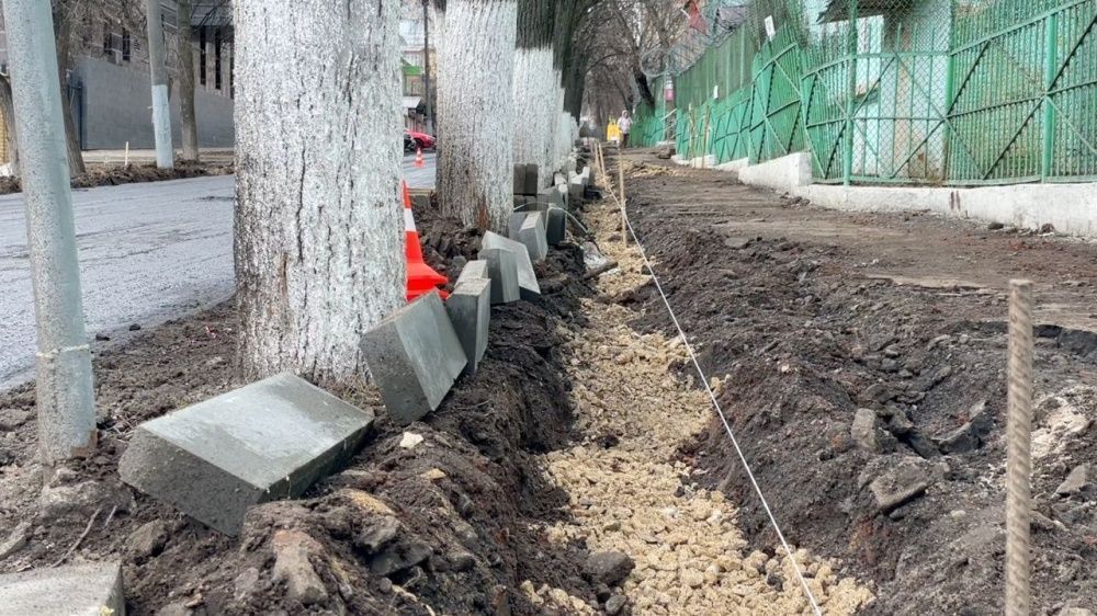 На улице Казанской меняют бордюры на тротуарной части. Далее запланировано устройство щебеночного основания и нового покрытия.